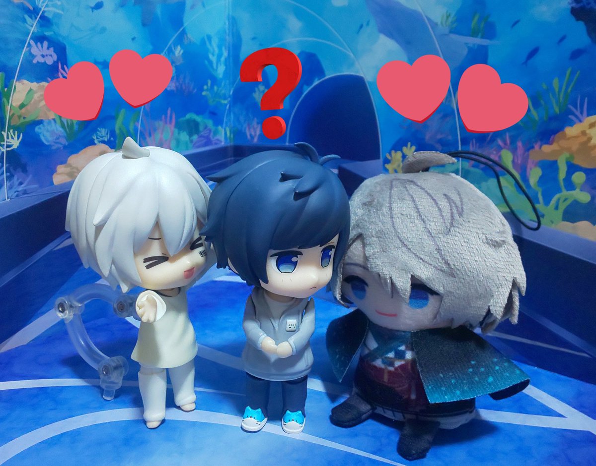 お題「あお」フライング 青の人そらるさん💙 🤍「そらるさーーーーん!!」 🌞「長尾ーーーー!!」 💙「長尾って誰?」 晴くん何言ってるの?(^∀^;) #深夜のねんどろ撮影60分一本勝負 #まふまふ #そらる #AftertheRain #ぬいぐるみの時間 #甲斐田晴 #にじぱぺっとが見られるタグ #にじぱぺっと