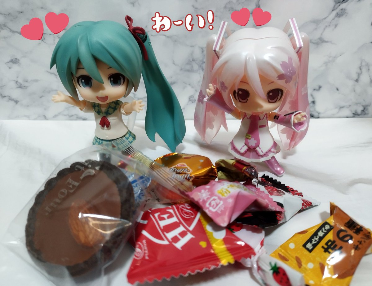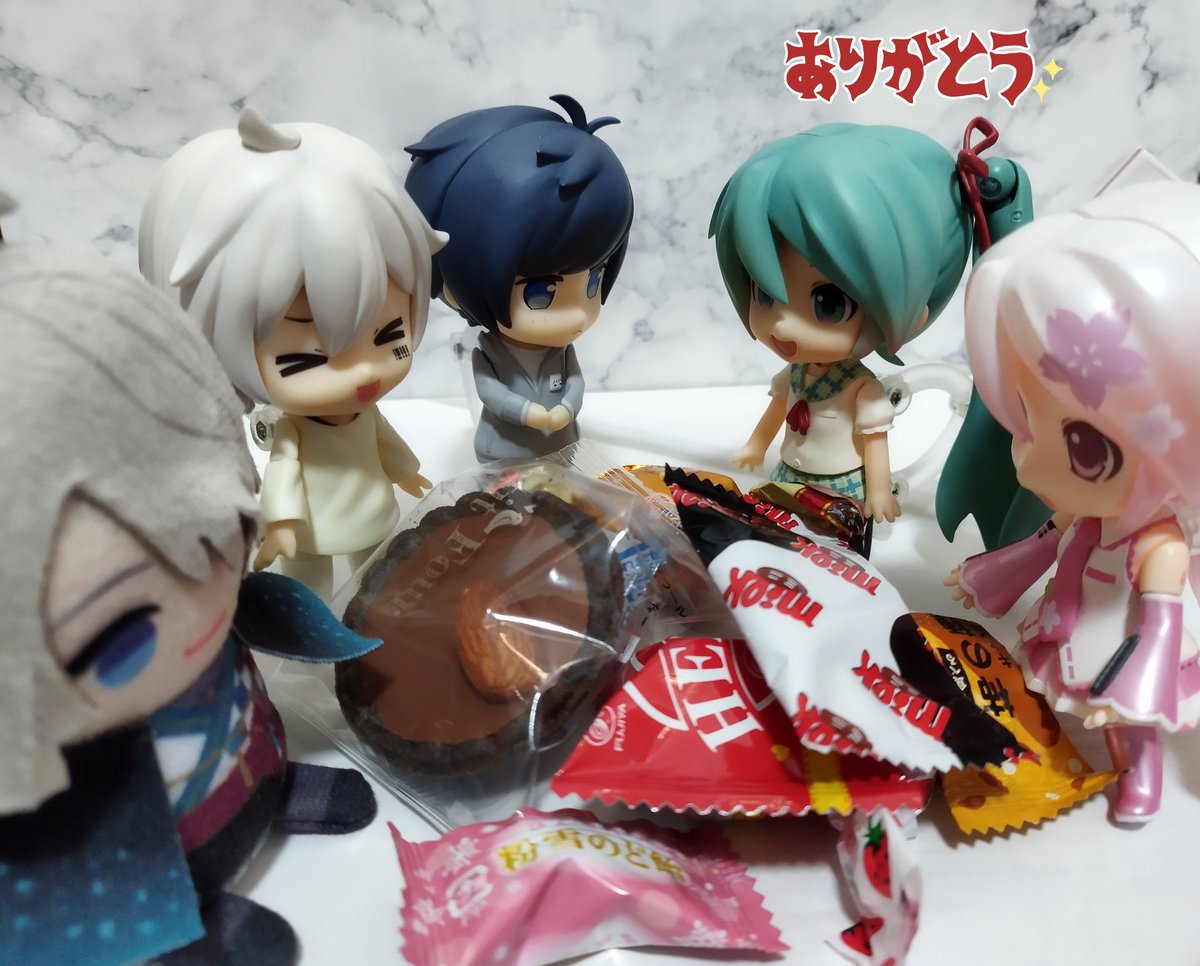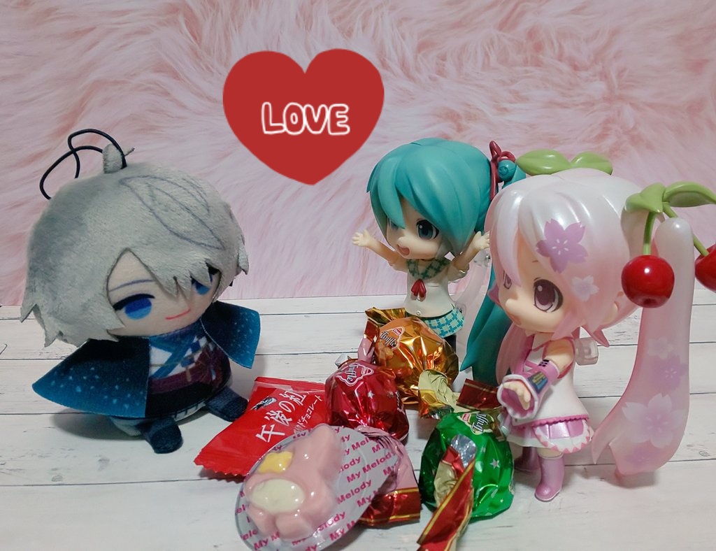 お題「ばれんたいんでー」フライング 💚🌸「まふくんそらるさんhappyValentine」 🤍「ありがとう!ミクちゃん」 💙「ありがとう」 良かったね2人ともミクちゃんからチョコ貰って💕☺️ #深夜のねんどろ撮影60分一本勝負 #深夜の初音ミク撮影60分一本勝負 #まふまふ #そらる #AftertheRain #バレンタイン