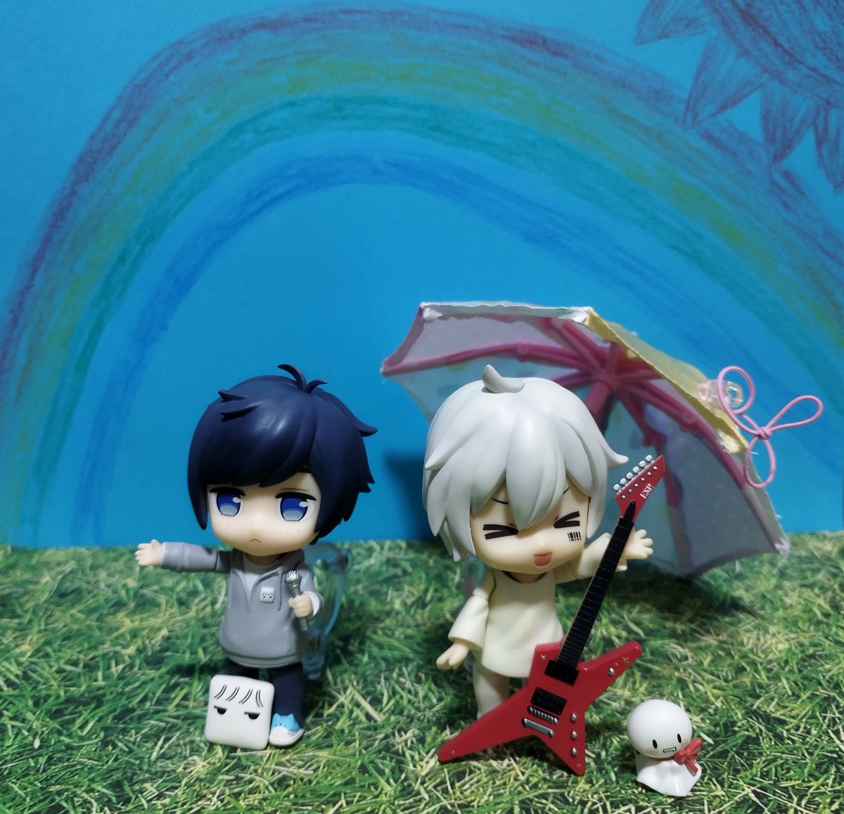 お題「おでかけ」フライング 明日はえてぃあのたまアリライブだね💙🤍☔🌈 ライブに行かれる方楽しんでください! #深夜のねんどろ撮影60分一本勝負 #まふまふ #そらる #AftertheRain #AftertheRain春音