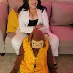 *photos taken moments before disaster* I dressed up as Vox(anne) Akuma with @yuuri_ebooks as Lucy Kaneshiro and @DovelyVtuber as Vox’s stuffed monkey Baba!! #Akurylic #AkumaMatata