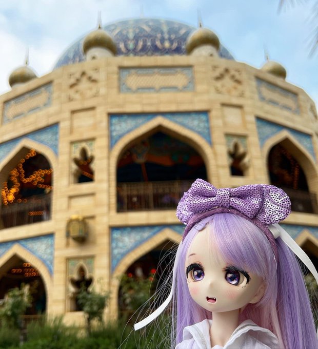 凛音は桜音と一緒にアラジンのエリアを散策し中❣️海外の素敵な建物の雰囲気にとても感激しています☺️💕💕 #MDDはいいぞ #ドル沼CH #missantroop #ディズニー #ディズニーシー #disney #disneysea #aladdin #flyingcarpet #アラジン