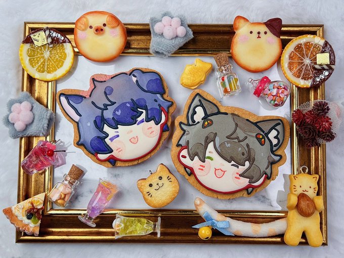 💜🗡🧡🎭 Do you prefer the Shoto cookie or Alban cookie?🍪 In China, there is a saying called "猫狗双全"which means we have a happy and幸せ life with cats and dogs. So who doesn‘t want to stay with handsome puppy and kitty?💕🐈 #shxtou #ArtoftheRogue #AlbanKnox #AlbanKnoxArt