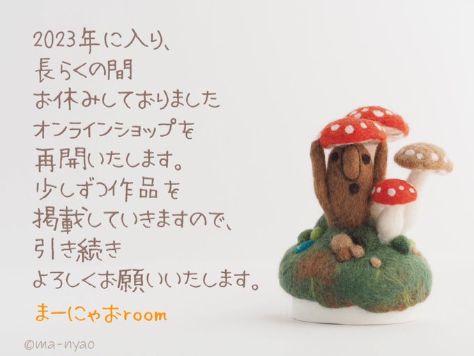 明日からちょっとお得です。 よかったら遊びに来てくださいね。 オンラインショップ まーにゃおroom*BASE ↓↓↓ manyao.handcrafted.jp #BASEec #羊毛フェルト #きのこ #オンラインショップ