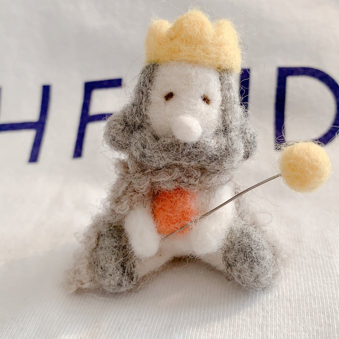作りたいと思って今日頑張っていたのは淡い色合いの王様でした👑 ✨ マントに悩み悩み。。。モコモコのグレーにしてみました💦色合いが似てるからわかりづらいですね。これ😅 でも私にしては上出来です👍 #とことこ作品 #BUMPOFCHICKEN #羊毛フェルト