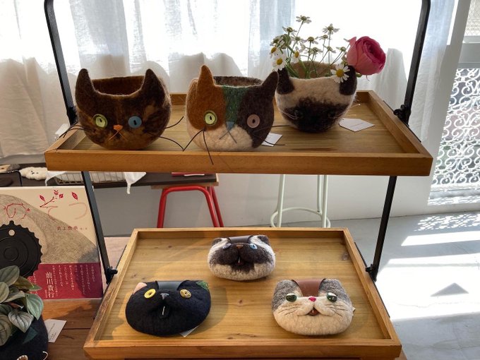 「青と夜ノ空 移動本屋」スタートしています。 NICOさんの猫アイテム、揃ってます!1Fのzoojeebaa cafeさんでコーヒーなどテイクアウトもできます。ゆっくりとお楽しみください! #青と夜ノ空 #移動本屋 #book #古本 #HandMadeFelt #NICO #羊毛フェルト #zoojeebaagallery #zoojeebaacafe #二子新地