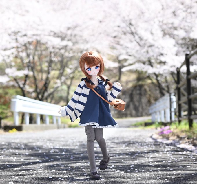 ひまり「さくらさんがとんでく〜〜〜😆さくらさんまってぇ〜🌸🌸🌸」 花吹雪が綺麗だけど、まぁ写らない🙂 ここめちゃくちゃ良かった☺️ #BorderlineToybox #moment_doll #ちぇりっ娘