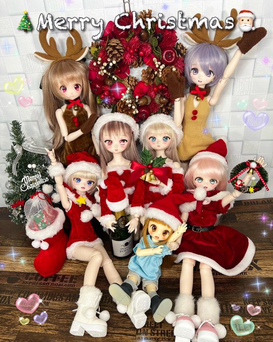 メリークリスマス🎄🥳🎉 娘達はクリスマスパーティーを楽しんでいます🎂🍾✨クリスマスプレゼントを並べて、どれを誰が着るか楽しそうにお話ししています🥰💕 #もこもかっこ #THユカリnail #MDDはいいぞ #ドル沼CH #p_house #ぷちりぼん #missantroop #クリスマス #Christmas #Xmas #パーティー