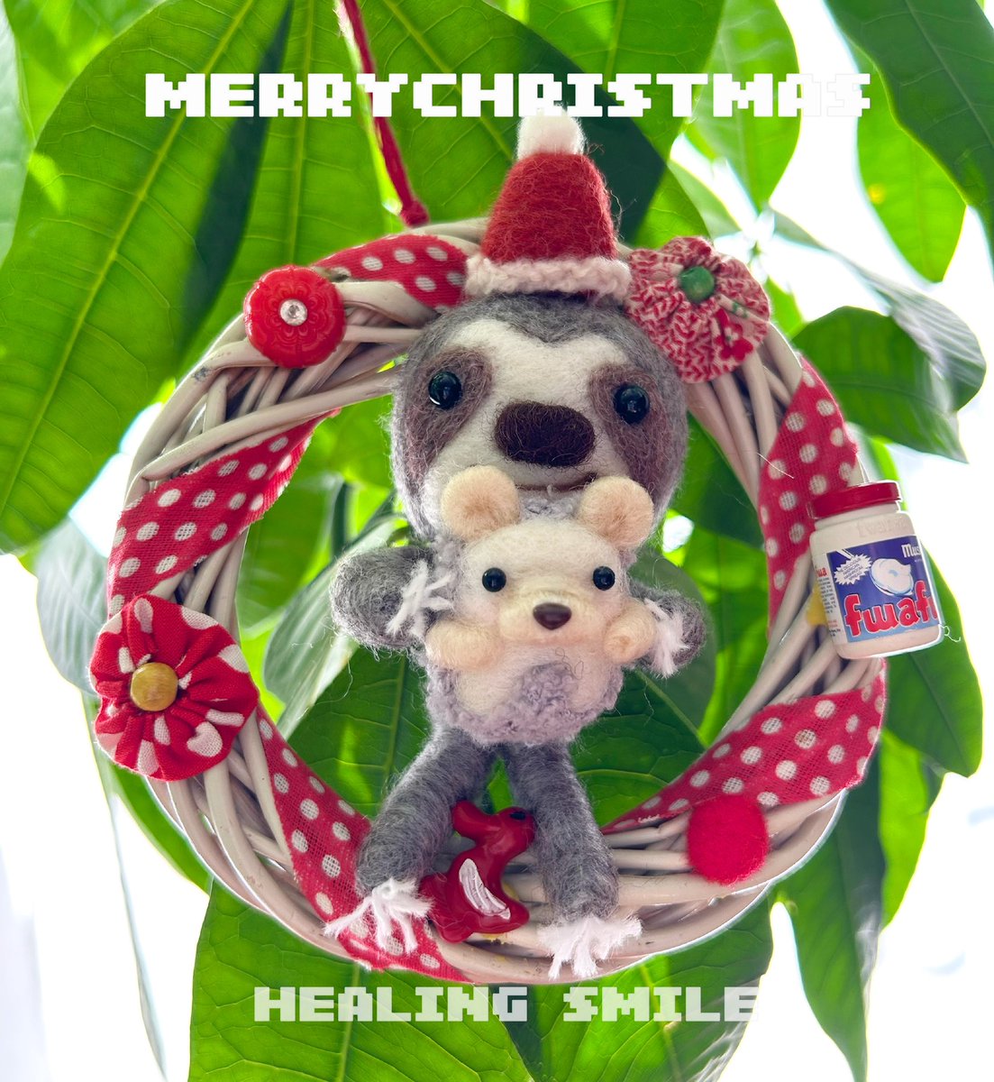 ✨メリークリスマス🎄✨ 素敵なクリスマスをお過ごし下さい☺︎ #ハンドメイド #handmade #羊毛フェルト #needlefelting #ナマケモノ #ハリネズミ #サンタさん #クリスマス #MerryChristmas #christmas #Christmas #リース