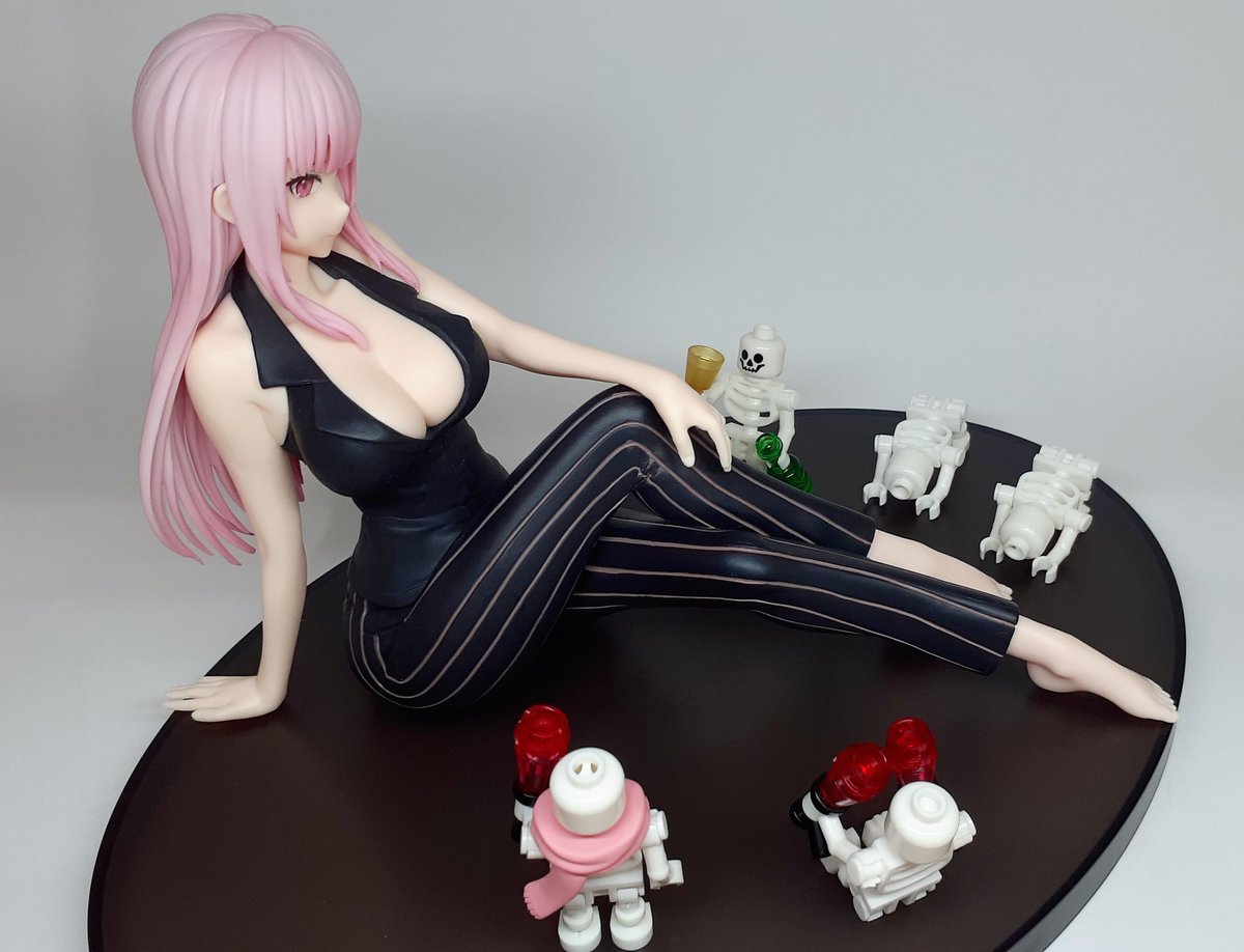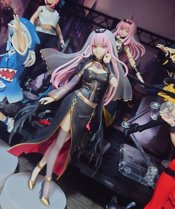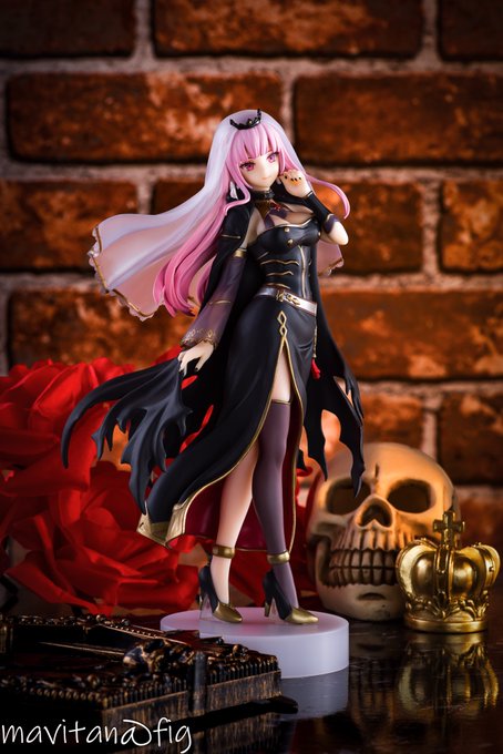 どうも、fig撮おじさんです😎 ポッパレのホロライブEN 森カリオペをダーク風に撮りました🌚 袖から腕が透けて見えるなど衣装造形が素晴らしい😍台座も今回から小さくていい感じです🥰 本日PVが公開されたワンピース106巻のテーマソング『未来島』も素敵でした🤩 #callillust #美しきフィギュア達の宴