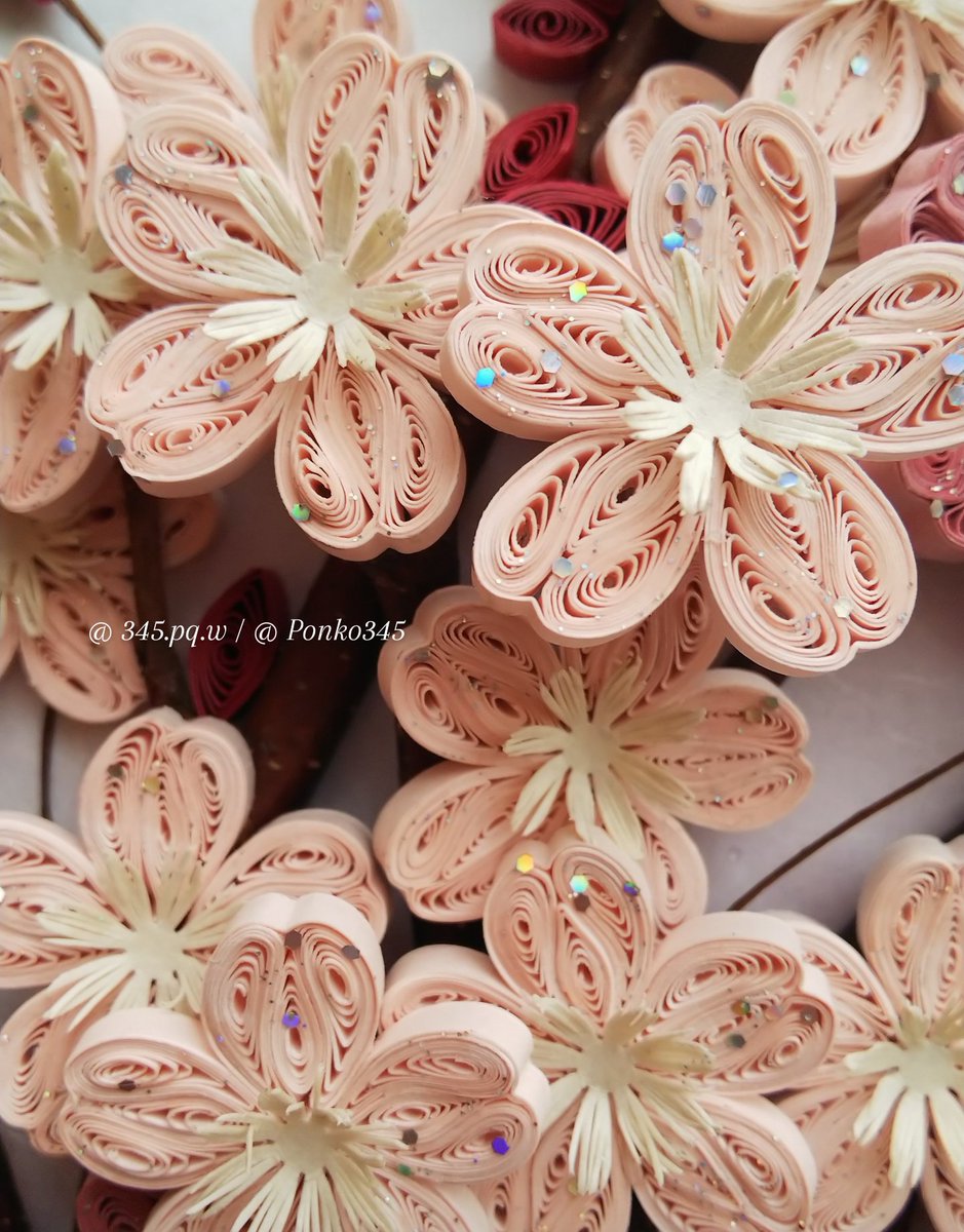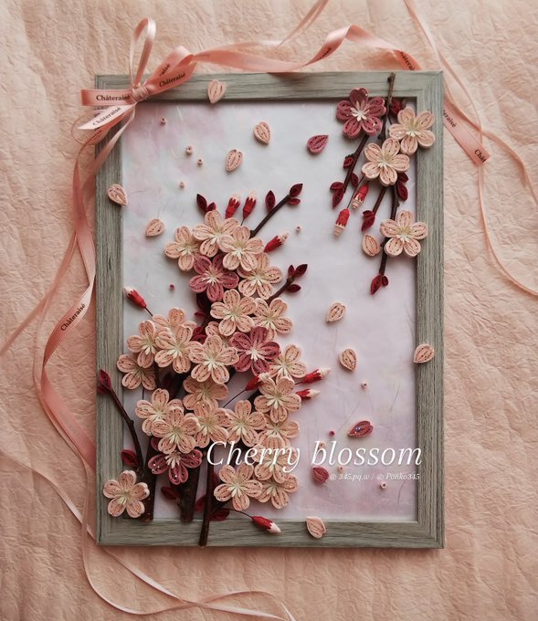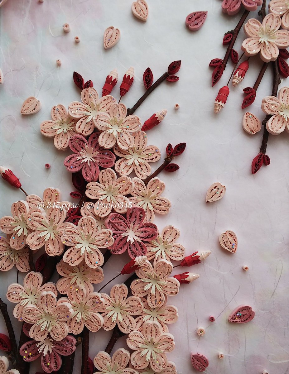 満開の桜🌸、この季節が1番好きです。今日は尊敬するアーティストのバースデー🎂を祝って! #quillingart #papercraft #cherryblossom #handmade #クイリングアート #ペーパークラフト #桜🌸 #ハンドメイド