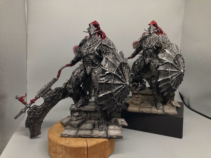 ハリギリさん@harigilly 原型、「竜狩りの鎧」完成しました!布をリアル素材にカスタムをしています。一部出力品による細かい造形もたまらないですね〜。DLCでの登場が印象的なボスでした。 #DarkSouls