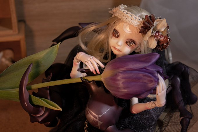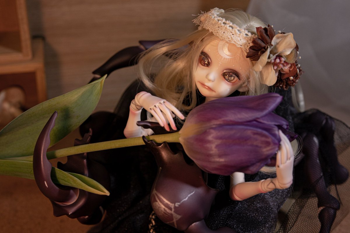 #今夜のドール撮影120分一本勝負 12/7のテーマ: ゆめ ーー夢か、現か。 カチューシャ: @flowerb_doll 様 ウィッグ: @DeeRibbon 様 猫目アイ: ねこひげ工房 様 #dollchateau