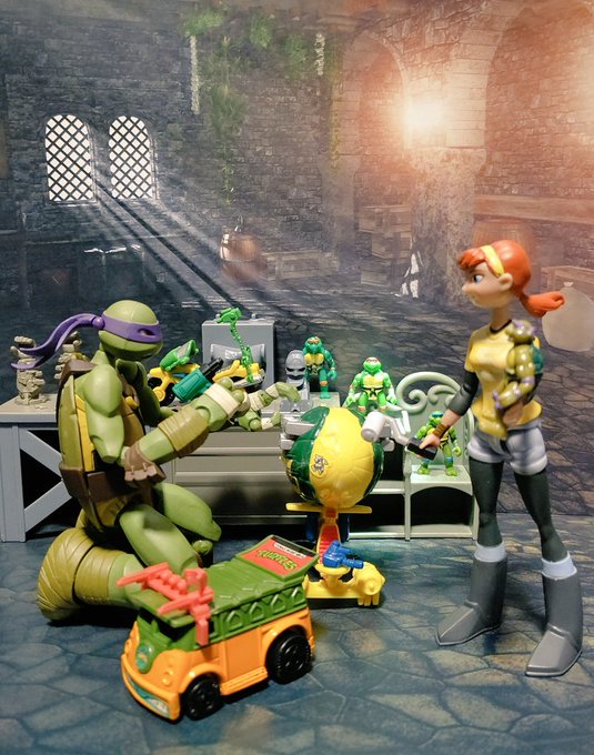 🐢【タートルズ(ニッ亀)-コレクション棚の整頓をするドナテロとエイプリル-】 #夜のフィギュア撮影会 10/21 お題 『コレクション』 #TURTLES #タートルズ #TMNT #Donatello
