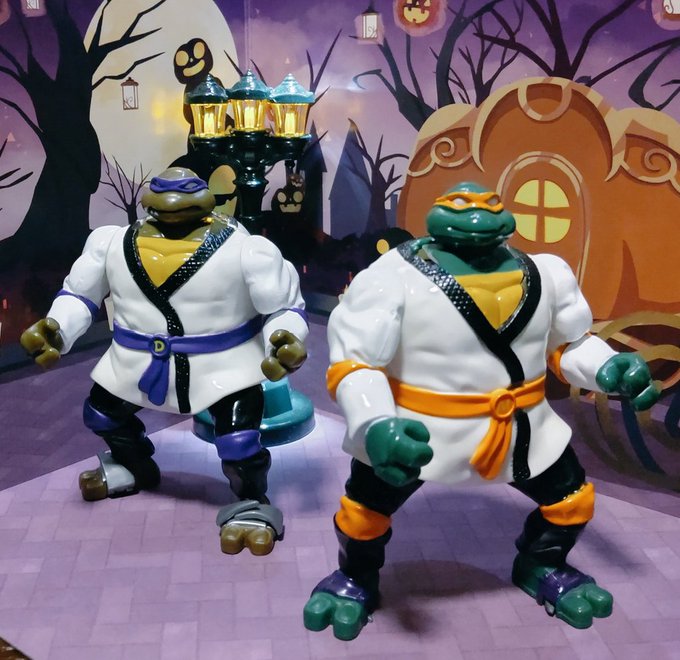 🐢【タートルズ(旧亀)-オートミューテーションで身を守るドナテロとミケランジェロ-】 #夜のフィギュア撮影会 10/22 お題 『守』 #TURTLES #タートルズ #TMNT #Donatello #Michelangelo