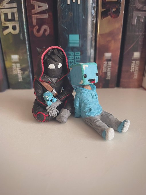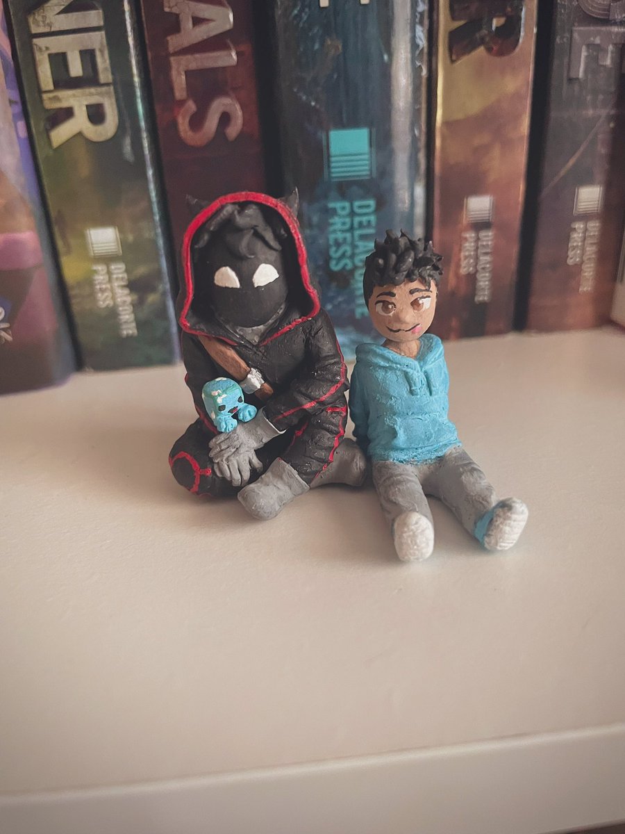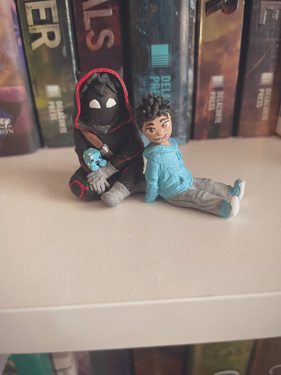 I finished my Skeppy clay figurine! :D Retweets for Skeppy to see hopefully? (PS: The tiny blue blob is Skeppy Jr. Also, yes I made Skeppy shorter) #Skeppyfanart #skeppy #skeppyjr #badboyhalofanart #badboyhalo #dreamsmp