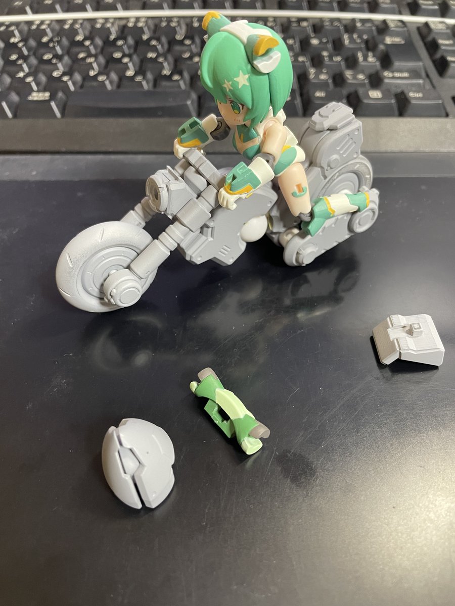#DTA祝6周年 おめでとうございます! 次回イベントに向けてDTA用オリジナルバイクを制作中。 フロントカウル(小)にシルフィーⅡのヘッドギアをセット。 後部カバーを取り外すことでシルフィーⅡの武装が装備できます!#デスクトップアーミー