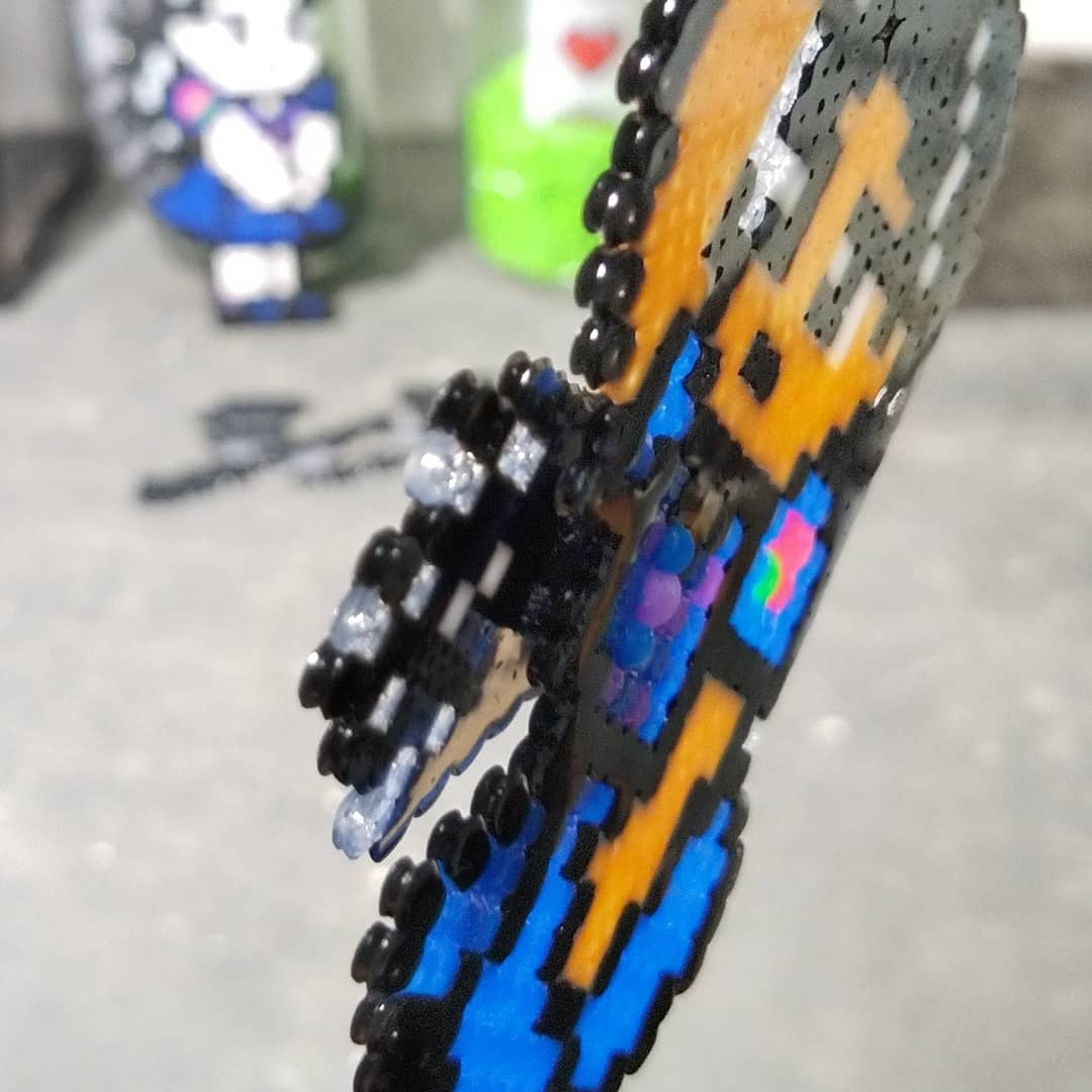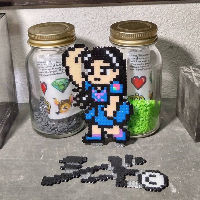 由花子完成✨🌹✨‼️ 案の定穴が詰まってしまい、再び半田ゴテ大活躍でした🤣 髪を前方になびかせて、前作との違いは伝わるでしょーか??(4枚目) #アイロンビーズ #山岸由花子 #ジョジョの奇妙な冒険 #ジョジョ #ドット絵 #pelerbeads #jojo #pixelart #diamondisunbreakable #nekketsu