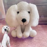 Life imitating art, Ellie kindly sitting in the pose of her mini model and toys, only one sausage was harmed in the process I’ve been assured! 😂 #Earlybiz #MHHSBD #Polymerclay #ArtistOnTwitter #handmade #DogsofTwittter