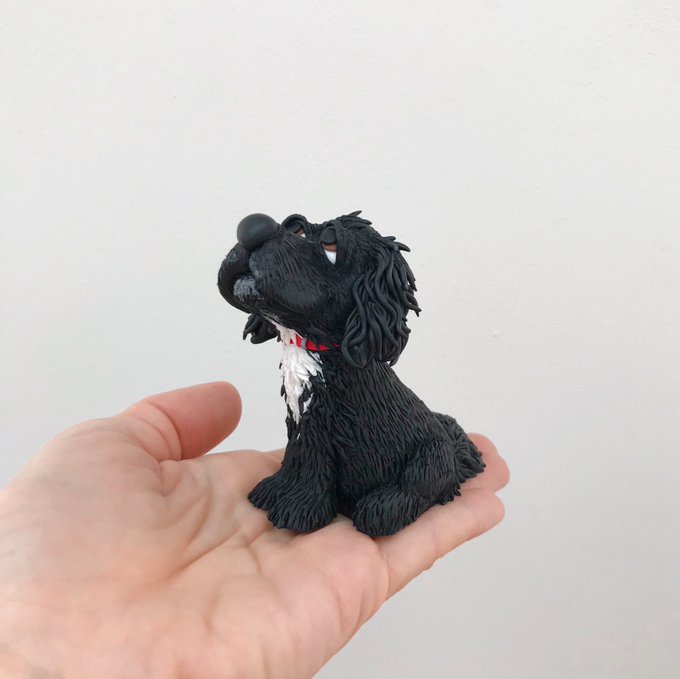 Meet mini Dave, a little memorial gift of a beloved pet 🥰@CornwallConnec thank you for your commission #MHHSBD #Earlybiz #petportraits #ArtistOnTwitter #DogsofTwittter #etsyhandmade #polymerclay