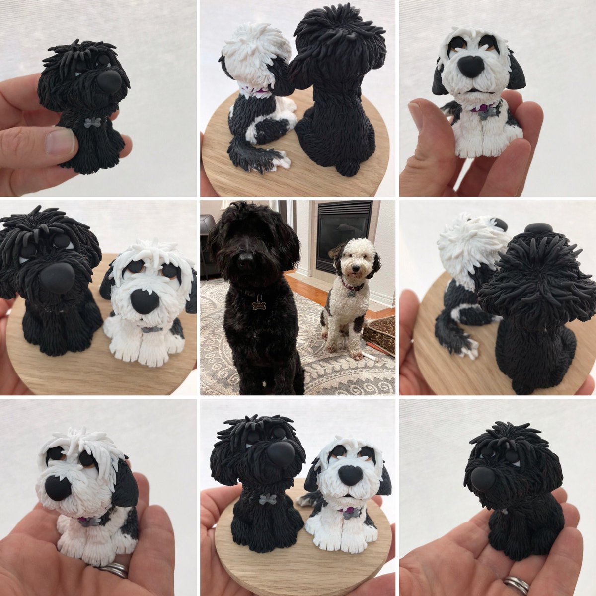 Another tiny pair of pups 🔎 Winnie & Baxter. Custom miniature models #Earlybiz #MHHSBD #petportraits #polymerclay #ArtistOnTwitter #DogsofTwittter #handmade