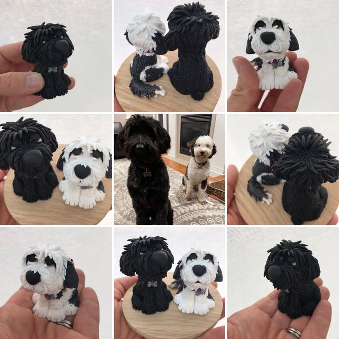 This is Louie & Maggie 🐾 they just travelled safely all the way to Canada! Custom mini models sharing a base #mhhsbd #Earlybiz #DogsofTwittter #handmade #polymerclay #elevenseshour #ArtistOnTwitter #firsttmaster