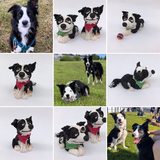 Mini collie models of Auggie & Coire , all ready to help celebrate their pawrents wedding day when it comes! 🐾💕 #MHHSBD #Earlybiz #handmade #DogsofTwittter #polymerclay #petportraits You can see their adventures here 🐶 instagram.com/theadventureso…