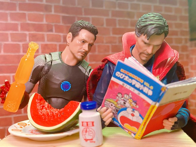 ホットトイズで発売が発表されたドクターストレンジ×アイアンマンのコンセプトアート案をアーツで再現しました! カスタムしてないのでアガモットの目等は難しいけどかっこいい…! 改造する勇気があればやってるんだけど…笑 #フィギュアーツ写真部 #フィギュア撮影友の会 #DrStrange