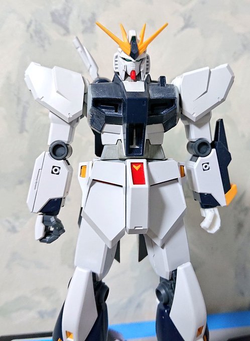 EG νガンダム完成しました。 友達とガンプラ対決(今年度中)での製作。 とりあえず素組よりはマシかなと。(笑) #ガンプラ好きと繋がりたい #ガンプラの画像貼るとRTされると聞いて #νガンダム #EG #ガンプラ