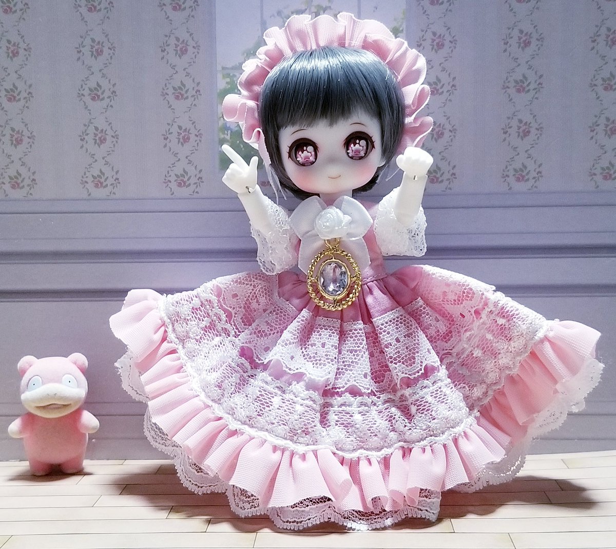 「今日のおはようございます」 🐺ど は ドール の ど、土曜日です。 おはようございます。 #ハートフル狼さん一家 #ElfinStore #あるそら荘 #ミニくまボーロ #うちのこかわいい