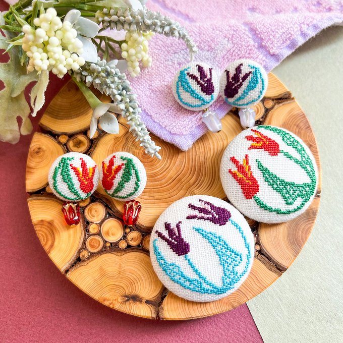 春の企画展、参加いたします🌸 色にあふれる命や文化を繊細な #クロスステッチ だけで描くデア・クライスです。 春色カラーそろってます!新作はユリ咲き #チューリップ 🌷 ▼gallery minne.com/items/31702712 @Lupopo_cafe ありがとうございます💝 #刺繍 #ハンドメイド #embroidery #pixelart
