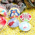 こまか #クロスステッチ で北欧文化や自然を色鮮やかに描いた刺繍ブローチやヘアゴム、キーリングを作っています🪡 新作はサウナモチーフのキーリングと、星座のブローチ🌟 ▼gallery minne.com/items/7142476 @Lupopo_cafe いつもありがとうございます💫 #刺繍 #embroidery #pixelart
