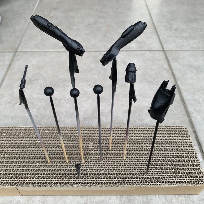 艶消しクリア吹いたので、暫し乾燥休憩です。乾いたら、ウェザリングに移行します。 #ひろがれマシーネンの輪 #マシーネンクリーガー40周年 #FALKE #76MaK #tenbowkissa