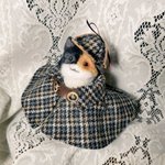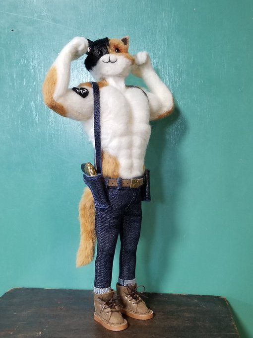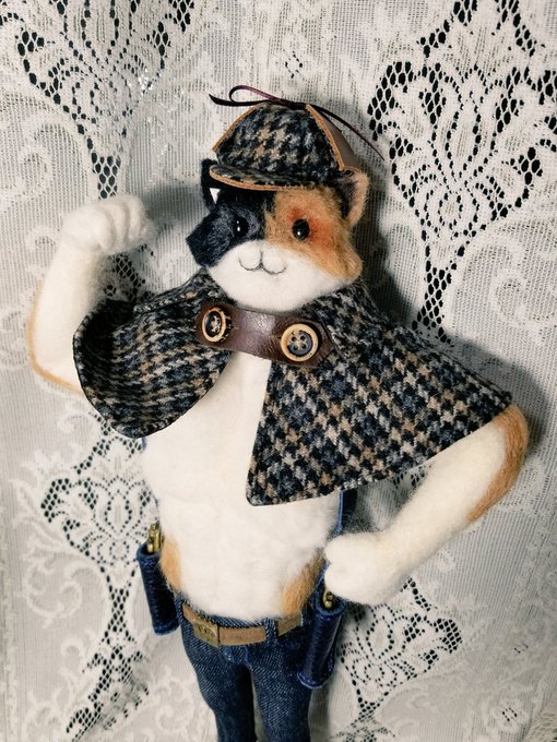 久々の自作羊毛フェルト🐑ニャッスル君に🐰縫いぐるみのマント着せてみたら… 名探偵ニャッスル💪😺🌟爆誕😆 筋肉で何でも解決してくれそう😂 キットに着せても可愛かった🥰 ニャッスルは何でも着こなすんだな😍 #fortnite #FortniteArt #Meowsles