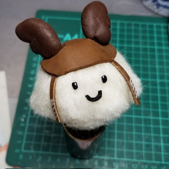 みんなそろそろスレッドレディ ガフちゃん貰った頃かな🎁 ウキウキと手に入れてモッフモフの姿見てたらムクムクと作りたい欲に駆られ…作り始めちゃったよぉ…頭だけ。とりあえず頭だけ…角や帽子の構造が難しくて研究中😅 #Fortnite #FortniteArt #ガフちゃん #guff #ガフちゃんかわいい