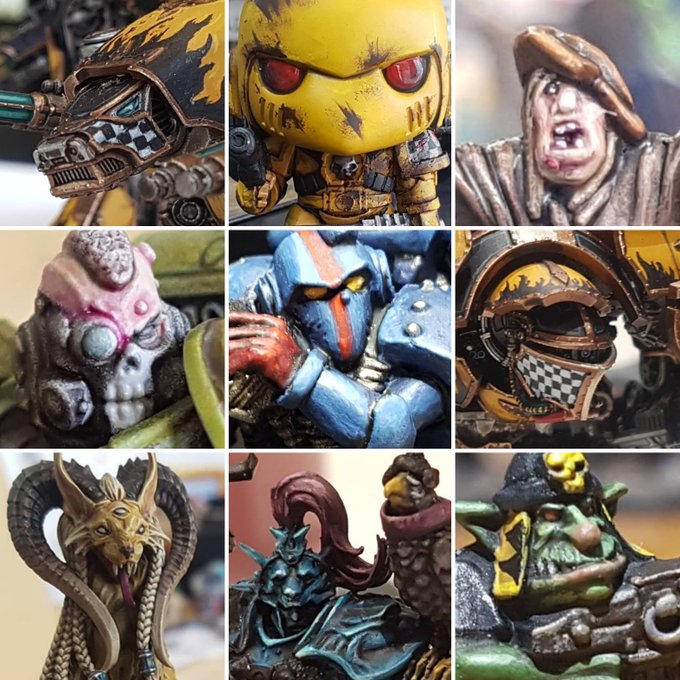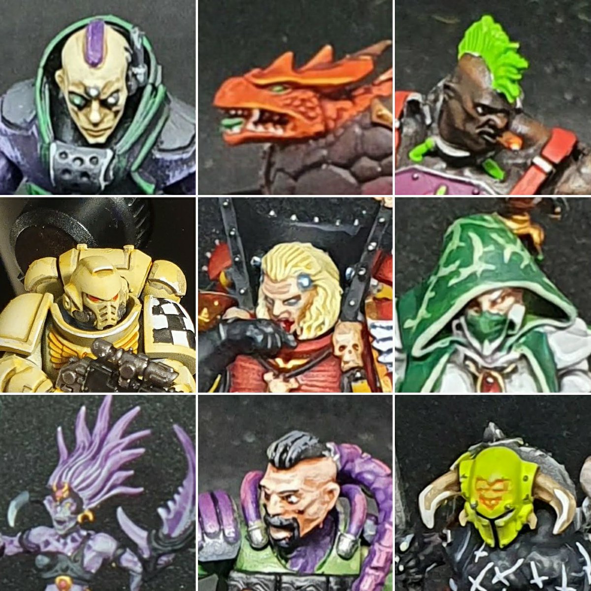 I don't know what this trend is but I like it. #faceyourart I've really tried to get better at painting faces this year, seeing a small collection on a grid is super cool 😁 #WarhammerCommunity #paintingwarhammer @WarComTeam