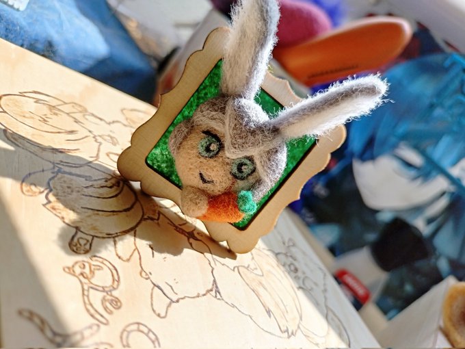 Hice un marquito chikito de un oc muy especial 🥺💙 Es Hope, un viera de ffxiv. Que os parece @GacetaEorzea ? #FinalFantasyXIV #FFXIVART #FFXIV #FinalFantasy14 #Viera #needlefelting #regalos #conejo #fieltroagujado #hechoamano #artesanal #mascotas