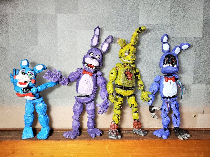 FNaF知っている人いますか? BOOTHに販売を考えてますが、ほしい人いなければ意味ないよね🤷🏻♀️ ちなみに写真の2人さんはオーダーメイドで作ってみました🙊 #fnaf #fnafamigurumi #fnaffanart #あみぐるみ #ふなふ