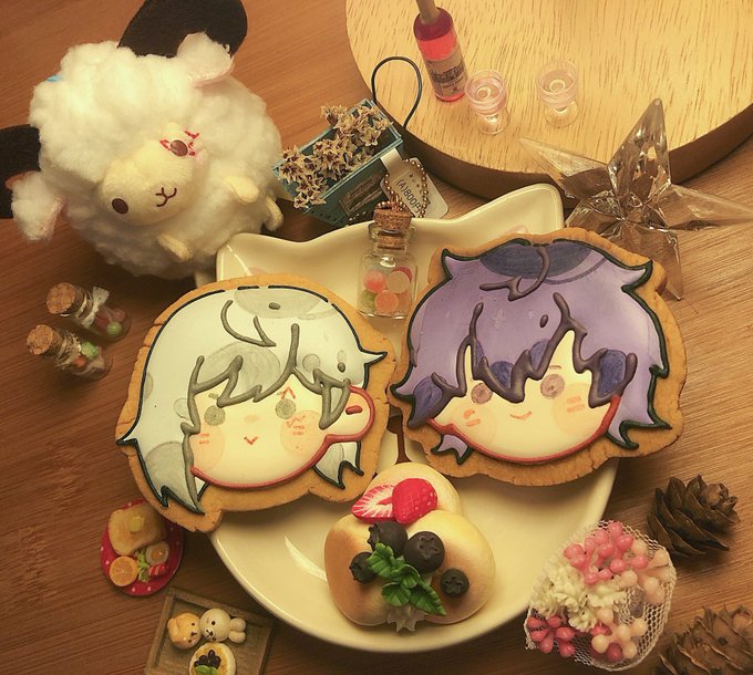 Cute cookies.❤️💜 ⚡🐏fufuchan ver. 🔮🌌uki ver. It smells good.But what do they taste like? I guess only Themselves know it. 害羞害羞!!(///ω///) #FulgurOvid #FulgurOvidHere #Comfydants #UkiVioleta #VioletAtelier