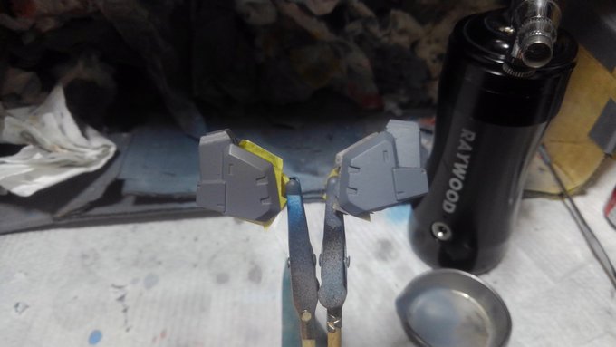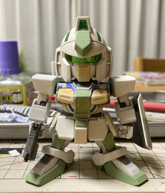 #ガンダム #ガンプラ好きな人たちと繋がりたい #ガンプラの画像貼るとRTされると聞いて #GM 結局塗料買いに行けなかったので、ラッカーのno.305で塗りました(右が塗装後) 基本塗装終了、墨入れが途中です。 後はデカール貼って、トップ吹いたら完成だ!