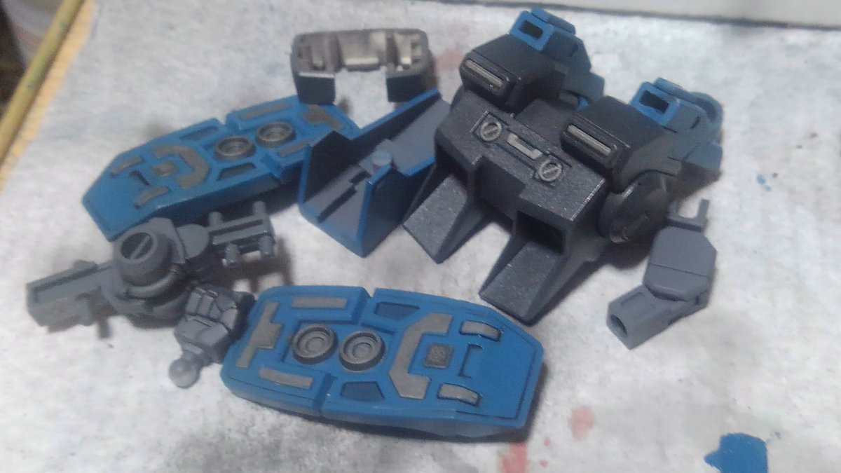 #gundam #gunpla #ガンダム好きと繋がりたい #GM #ガンプラ #ガンプラの画像を貼るとRTされると聞いて 基本塗装、墨入れ終了! で、一度組み立てて、デカール貼ります。 今回は隠密機でもあるので控えめに。