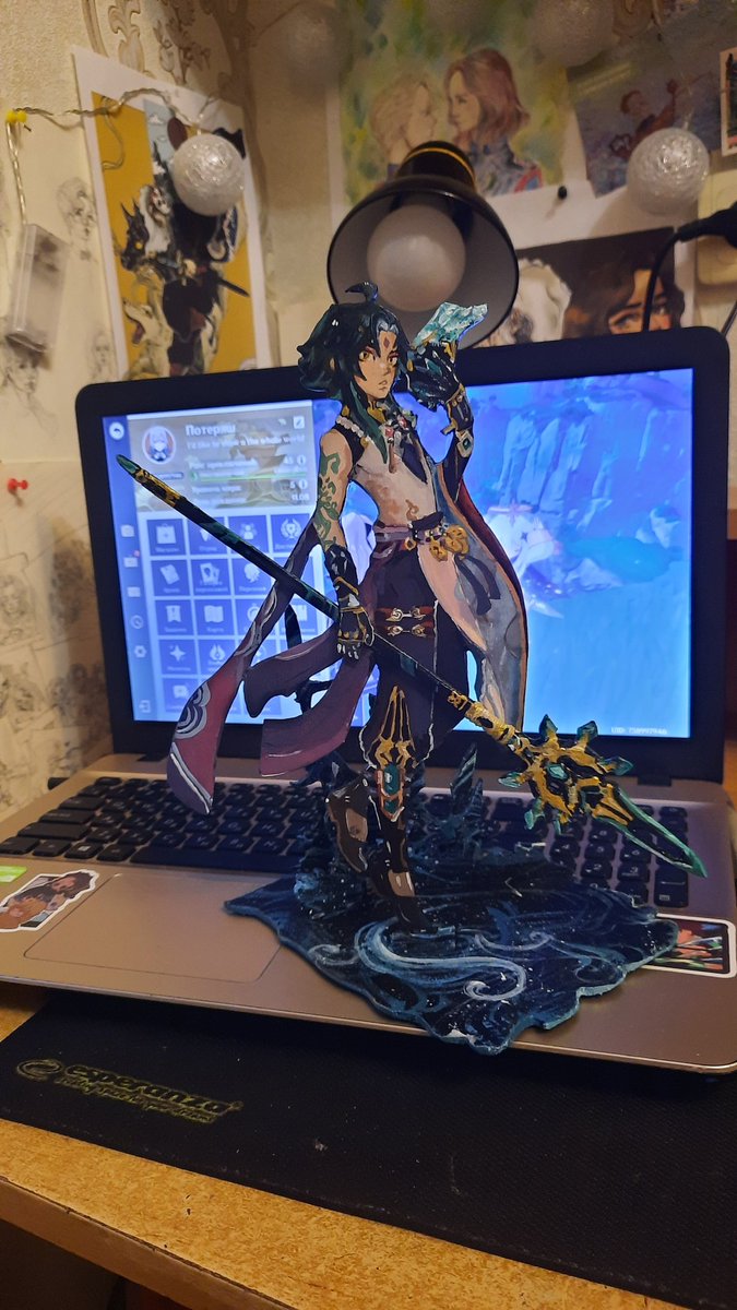 Я доделала его!!! Много часов работы, желания бросить,порезов,клея на руках ,опилков и ругани на фигурку ,но теперь у меня есть свой Сяо💚💙 Жаль ,что не в игре .. П.с. копье снимается :3 Как вам ?? #Xiao #Genshinlmpact #georgenotfoundfanart #Genshin_Impact