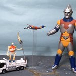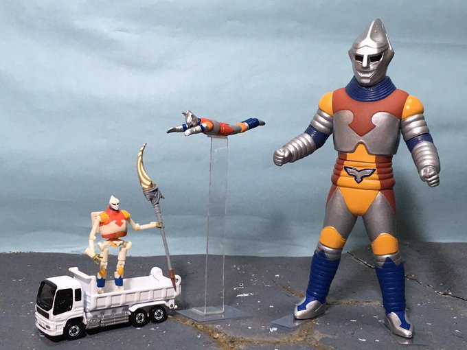 #夜のフィギュア撮影会 お題『失敗』 『東西南北 天地ー!』決めポーズがちょっと失敗しちゃったジェットジャガー!?(←HG D+ ゴジラ07で撮影) #ジェットジャガー #ゴジラ #ゴジラSP #Godzilla #GodzillaSP #GodzillaSingularPoint #HGゴジラ #トミカ #オオタキファクトリー #オモ写