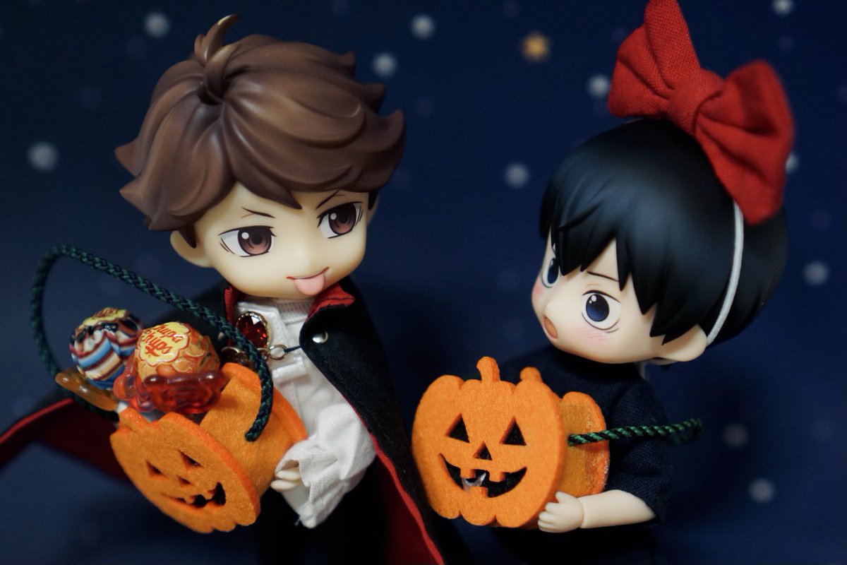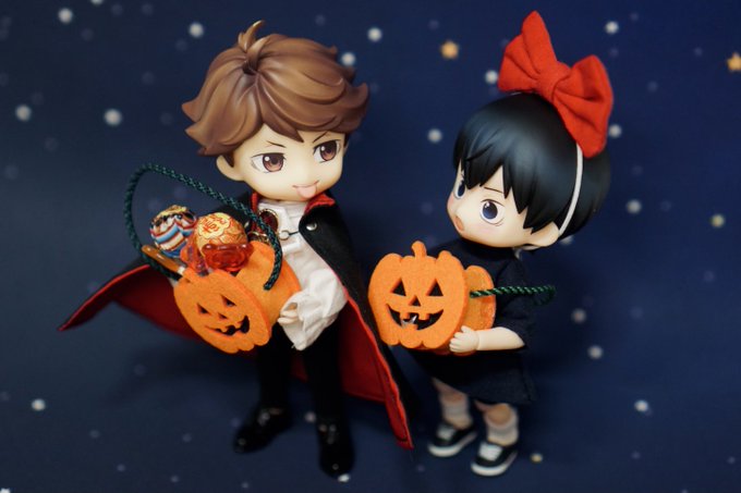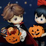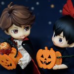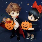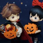 #CLAMPハロウィン2022 グッドスマイルカンパニーさん(@gsc_goodsmile)のねんどろさくらちゃんと小狼君と、ケロちゃん。 (お体稼働するように変更しております) お洋服や靴は購入品。 背景や小物は100均様各店。 お帽子制作と撮影は #CLAMP です。 #Happyhalloween!🎃
