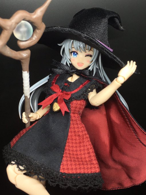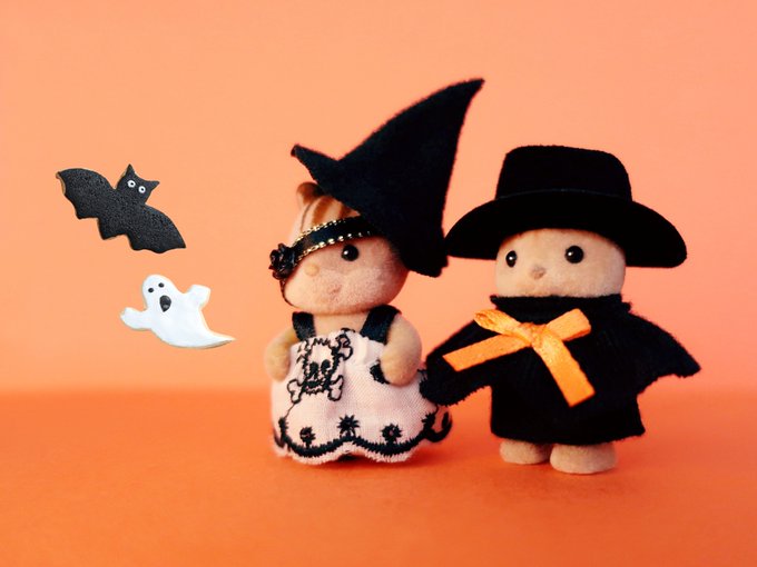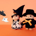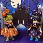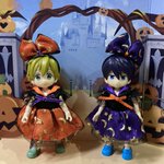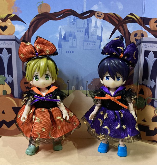 #CLAMPハロウィン2022 グッドスマイルカンパニーさん(@gsc_goodsmile)のねんどろさくらちゃんと小狼君と、ケロちゃん。 (お体稼働するように変更しております) お洋服や靴は購入品。 背景や小物は100均様各店。 お帽子制作と撮影は #CLAMP です。 #Happyhalloween!🎃