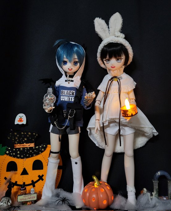 사탕 나눠 갖고 할로윈 보내는 오이카게🍭 찍을땐 몰랐는데 치비오 초점 조금 나가서 아쉬워..다시찍기엔 애들 이미 쓰려져서 다시 못세워…😭😭😭 #HappyHalloween #halloween2021 #유피비츠 #오이카게 #及影 #oikage