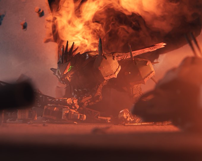 #今月作ったプラモ晒そうぜ その3 ジェノブレイカーと、初ジオラマにチャレンジしたHGグフです😃 ジェノブレイカーはHMM初期のキットなので、合わせ目などに苦労しながらも光沢仕上げにトライした作品です✨ グフはパケ絵風にして、爆風などもやってみたお気に入りの1つです😆 #ガンプラ #HMMゾイド