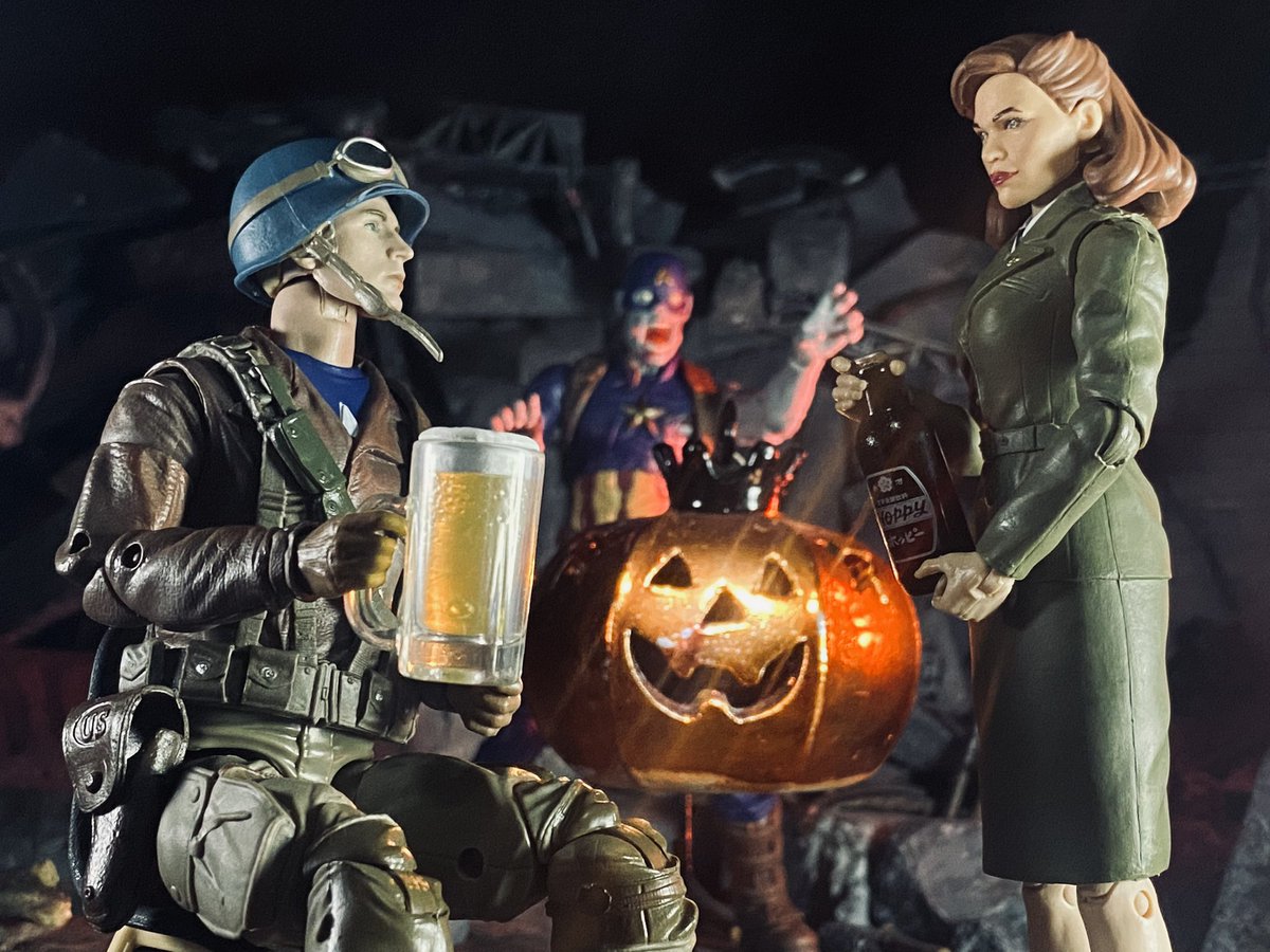 #夜のフィギュア撮影会 #おもちゃ撮影会 お題 『ハロウィン』 スティーブとペギーの? HAPPY?HOPPY?🍺 HELLOWEEN? #HappyHalloween2021 #MarvelLegends #CaptainAmerica #お笑いフィギュア劇場 #Avengers #WhatIf