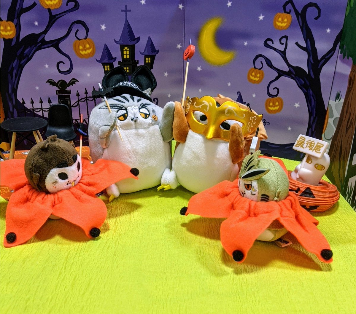 #HappyHalloween2021 今宵、オレンジ色の可愛いやつら。 左から #海獣アイシー #BENTHEGHOSTCAT #フトアゴンbaby #メカトロウィーゴ #クオッカちゃん #フンフン