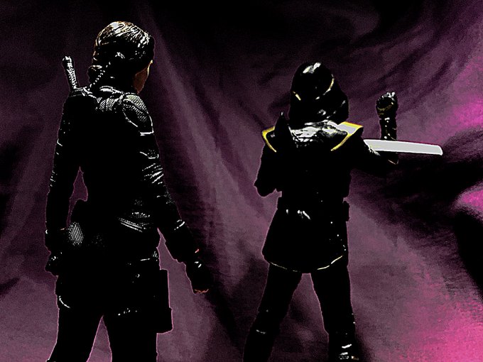 #おもちゃ撮影会 7/20【占】 非情な刃を振るう男の心を占めるのは、目の前で消滅した家族を救えなかった事への後悔。 そんな男の背中を見る女は何を思うか。 #BlackWidow #Hawkeye