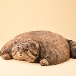 今日は国際マヌルネコの日だそう、 レフくんのマヌルネコ枕はクスノキでできています。 寝心地はうちの犬のお墨付き。 #InternationalPallasCatDay #国際マヌルネコの日